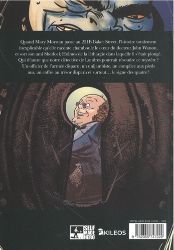 Quand Mary Morstan passe au 221B Baker Street, l'histoire totalement inexplicable qu'elle raconte chamboule le coeur du docteur John Watson, et sort son ami Sherlock Holmes de la léthargie dans laquelle il s'était plongé. Qui d'autre que notre détective de Londres pourrait résoudre ce mystère ? Un officier de l'armée disparu, un unijambiste, un complice aux pieds nus, un coffre au trésor disparu et surtout... le signe des quatre ?
