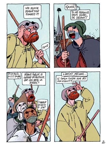 Quatre aveugles (sauf un qui triche) errent sur les chemins. Ils trouvent refuge dans un ermitage habité par une dame que l'on nomme la nonne anonyme ou Niévenne, c'est selon. Un pauvre chevalier les rejoint. Après une passe d'armes durant laquelle il se coupe l'oreille, il se prend de passion pour les tournesols. Merlin se mêle à tout ça, nonobstant le roi Artus, sans oublier un goupil et un chat qui jouent comme si tout cela était une pièce de théâtre. Bref, c'est le bordel.
