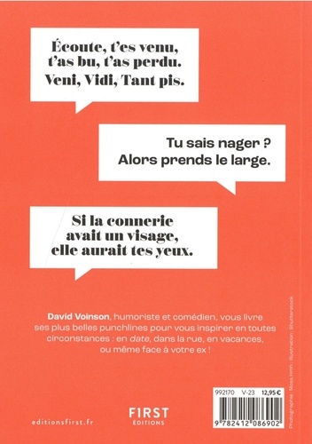 Générateur de punchlines face aux relous ! Ici, on va parler de la Champion's League des gros relous. Le Mbappé des forceurs, celui qui ne comprend pas quand tu lui dis clairement les choses et qui va te mettre une douille en pleine lucarne. Une punchline, c'est LA phrase que t'as envie de sortir pour clouer le bec à la personne en face de toi, qui le fera bégayer et le laissera sans voix pendant que, toi, trop fière de ce que tu lui as envoyé, tu le raconteras à tous tes potes. Pour que tu ne sois jamais à court de repartie face aux gros relous de la vie, David Voinson, humoriste et acteur, t'ouvre les portes de son imagination et ses plus belles punch'... bien salées !