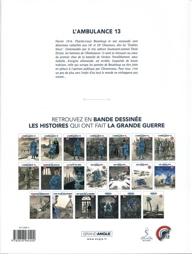 Février 1916. Charles-Louis Bouteloup et son escouade sont désormais rattachés aux 56e et 59e Chasseurs, dits les "Diables bleus". Commandés par le très admiré lieutenant-colonel Emile Driant, les hommes de l'Ambulance 13 vont se retrouver au cour du premier choc de la bataille de Verdun. Parallèlement, soeur Isabelle, d'origine allemande, est arrêtée. Suspectée de haute trahison, celle qui occupe les pensées de Bouteloup va être jetée en pâture à l'opinion publique par Clemenceau. Pour tous, c'est un pas de plus vers l'enfer d'où tout le monde ne réchappera pas vivant...