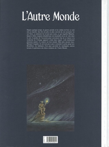Depuis quelque temps, la guerre gronde et les soldats de bois se sont mis en arche. Jan rêve de plus en plus souvent de son ancienne vie sur Terre, sa mémoire lui revient peu à peu, ce qui inquiète Blanche. Quant à Abler, toujours obnubilé par son insatiable envie de voler dans le ciel, il profite de l'occasion pour convaincre Jan de se lancer à la recherche de l'étrange appareil volant das lequel, voilà maintenant plusieurs années, il a atterri sur leur monde. Mais plus aucune trace. Menant l'enquête, ils arrivent peu à peu à remonter la piste jusqu'aux Brouillons, les habitants d'un pays par delà les montagnes, ancien terrain d'expériences des dieux créateurs de l'Autre Monde.