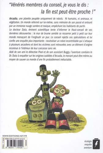 "Un conte Ecologeek ! " Arcadia, une planète peuplée uniquement de robots. Ni humains, ni animaux, ni végétation. Un monde refermé sur lui-même, sans mémoire de son passé et entouré par un immense nuage sombre et toxique, empêchant les habitants de partir. Le docteur Data, éminent scientifique tente d'informer le Haut-conseil de ses dernières découvertes : le mur de brume semble se resserrer petit à petit sur leur monde menaçant de l'engloutir un jour. Le conseil rejette ces spéculations et lui confie une enquête plus importante : neutraliser un robot incontrôlable qui s'attaque à plusieurs arcadiens...