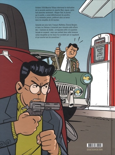 Octobre 1956 Maurice Tillieux interrompt la réalisation de la seconde aventure du reporter Marc Jaguar, après huit planches seulement : Risque-Tout, le journal qui la publie, a cessé définitivement de paraître. Il n'y reviendra jamais, préférant alors se lancer dans les enquêtes de Gil Jourdan. Soixante ans plus tard, François Walthéry, Etienne Borgers et Jean-Luc Delvaux s'associent pour résoudre cette affaire des "Camions du diable" et répondre enfin à la question laissée en suspend : mais que contient donc cette fameuse valise récupérée sur les lieux d'un accident par un vagabond et qui suscite tant de convoitises ?