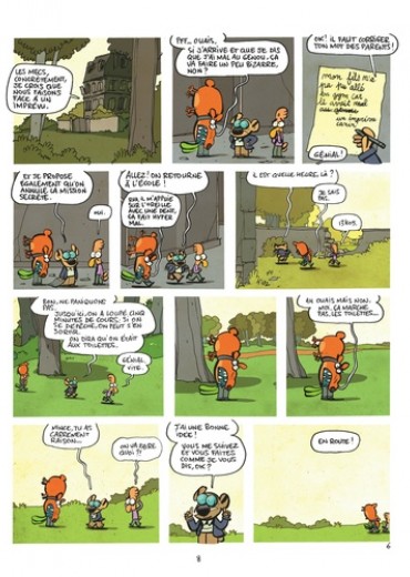 La grosse aventure, elle peut démarrer à la campagne, à l'école, ou au détour de n'importe quelle situation en apparence banale et sécurisée ! C'est ce que vont vous prouver Les Cavaliers de l'apocadispe dans leurs nouvelles aventures, dont un récit de 30 pages ? une première pour la série ! ? où Ludo, Jé et Olive vont devoir voyager sans adultes afin de rallier la classe Poney dont ils ont raté le bus... Leurs seules armes : un Manuel des ragondins malins mais surtout une inconscience totale et beaucoup d'innocence ! Mais vous retrouverez aussi vos trois héros dans des récits plus courts et tout aussi enlevés, dont Les Cavaliers de l'apocadispe explorent le manoir, paru en mini-récit dans Spirou en 2008. Un récit fondateur, redessiné pour l'occasion, tellement drôle qu'il donna immédiatement envie à la rédaction de poursuivre l'aventure !