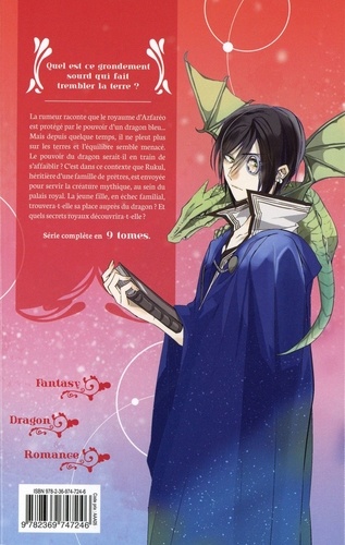 La rumeur raconte que le royaume d'Azfaréo est protégé par le pouvoir d'un dragon bleu... Mais depuis quelque temps, il ne pleut plus sur les terres et l'équilibre semble menacé. Le pouvoir du dragon serait-il en train de s'affaiblir ? C'est dans ce contexte que Robot, héritière d'une famille de prêtres, est envoyée pour servir la créature mythique, au sein du palais royal. La jeune fille, en échec familial, trouvera-t-elle sa place auprès du dragon ? Et quels secrets royaux découvrira-t-elle ?