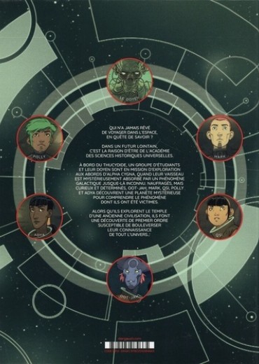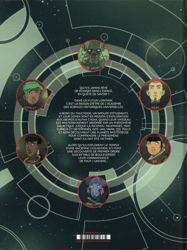 Qui n'a jamais rêvé de voyager dans l'espace, en quête de savoir ? Dans un futur lointain, c'est la raison d'être de l'académie des sciences historiques universelles. A bord du Thucydide, un groupe d'étudiants et leur doyen sont en mission d'exploration aux abords d'Alpha Cygna, quand leur vaisseau est mystérieusement absorbé par un phénomène galactique jusque-là inconnu. Naufragés, mais curieux et déterminés, Oot-Jah, Mark, Qsi, Polly et Adya découvrent une planète mystérieuse pour comprendre le phénomène dont ils ont été victimes. Alors qu'ils explorent le temple d'une ancienne civilisation, ils font une découverte de premier ordre susceptible de bouleverser leur connaissance de tout l'univers....