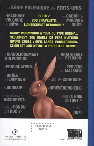 Sortez vos chapelets, l'antéchrist débarque ! Danny Wormwood a tout du type normal. Il est producteur de séries télé pour adultes, a une petite amie et même un animal de compagnie. Mais son père, le Diable, n'attend qu'une chose de son rejeton, qu'il lance l'apocalypse sur Terre. Ce qui est loin d'être la priorité de Danny... Entre Lucifer et Preacher, découvrez l'intégrale dune série culte de Garth Ennis pour la première fois en France ! Humour, provocation et violence sont au rendez-vous.
