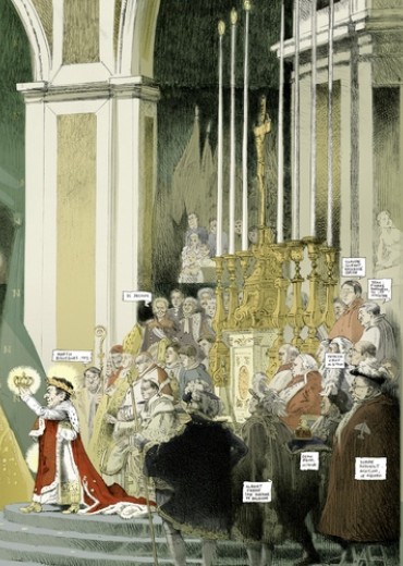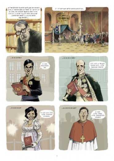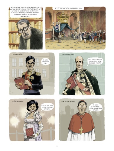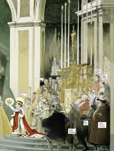 « Il a gagné ! C'est pas possible ? Ce type vulgaire, minuscule, sans culture, agité et instable est devenu président ? ». Afin de ne pas se laisser aller à la dépression à l'annonce d'un tel fiasco national, Patrick Rambaud, de l'Académie Goncourt, s'est mis pour notre plus grand plaisir à écrire ces Chroniques. Un journal intime et excédé de toutes les extravagances, invraisemblances, imbécillités, dérapages et enfumages qui ont suivi l'accession au trône de Nicolas Sarkozy. Des petits bijoux d'observation, d'humour et de colère, dans une écriture fleurie et incisive, qui s'amuse à jouer sur les ressemblances troublantes entre le règne présidentiel de Sarkozy et celui de l'Empereur Napoléon ? Au dessin, Olivier Grojnowski s'approprie avec malice les traits des figures les plus clinquantes qui forment sa cour : le Duc de Sablé, la Baronne Dati, le Cardinal de Guéant, et bien sûr, les Impératrices successives ! Un tableau jouissif et pitoyable de la tête du pouvoir. Cet album est un florilège des meilleures chroniques issues des cinq recueils publiés aux éditions Grasset.