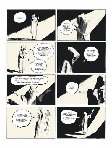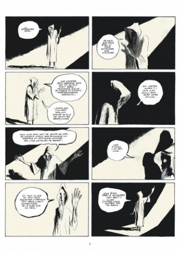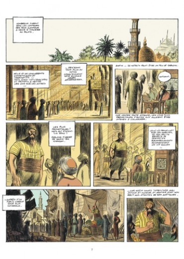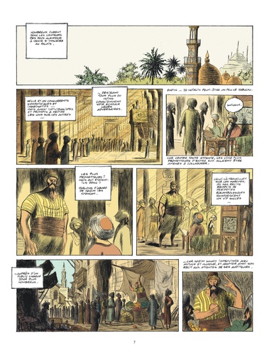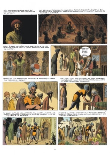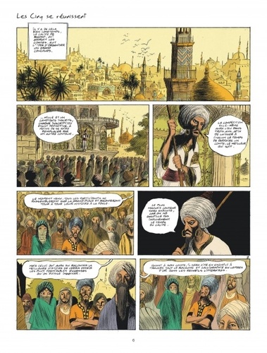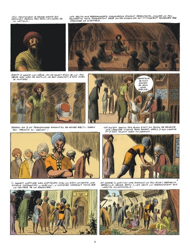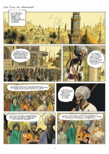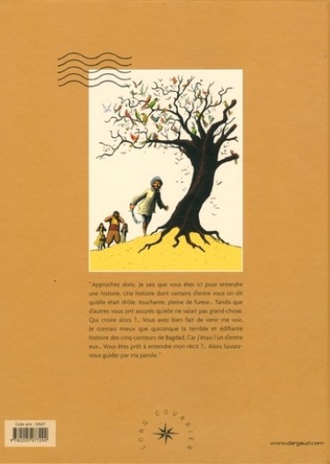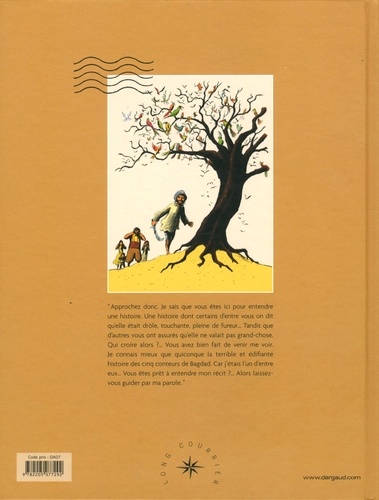 "Approchez donc. Je sais que vous êtes ici pour entendre une histoire. Une histoire dont certains d'entre vous on dit qu'elle était drôle, touchante, pleine de fureur... Tandis que d'autres vous ont assurés qu'elle ne valait pas grand-chose. Qui croire alors ?... Vous avez bien fait de venir me voir. Je connais mieux que quiconque la terrible et édifiante histoire des cinq conteurs de Bagdad. Car j'étais l'un d'entre eux... Vous êtes prêt à entendre mon récit ?... Alors laissez-vous guider par ma parole."