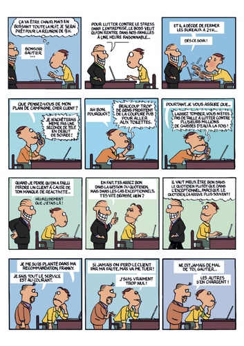 Bienvenue dans la pub ! Bienvenue dans un univers où les chefs de groupe, concepteurs et autres créatifs donnent chaque jour, invariablement, le meilleur d'eux-mêmes ! Car il en faut, de l'énergie, pour survivre à ces défis quotidiens : soigner son image, répandre des horreurs sur ses collègues, supporter avec le sourire les névroses des autres, savonner la planche des plus ambitieux, mettre la pression sur les subalternes tout en flagornant la hiérarchie, intriguer pour obtenir une promotion, draguer à la photocopieuse... Et dire qu'en plus, il faudrait travailler pour les clients...