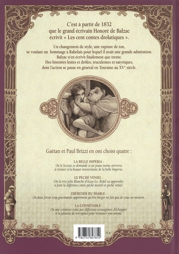 Un changement de style, une rupture de ton, se voulant un hommage à Rabelais pour lequel il avait une grande admiration. Balzac n'en écrivit finalement que trente. Des histoires lestes et drôles, truculentes et satyriques, dont l'action se passe en général en Touraine au XVe siècle. Gaétan et Paul Brizzi en ont choisi quatre : La belle imperia : Où le lecteur se demande si un jeune moine arrivera d résister A la beauté ensorcelante de la belle Impéria. Le péché Véniel Où la très jolie Blanche d'Azay-Le-Ridel va apprendre A faire la différence entre péché mortel et péché véniel. L'héritier du diable. Où deux frères trop gourmands apprennent qu'are berger ne fait pas de vous un mouton. La connétable : Où une comtesse tente par différents stratagèmes d'échapper à la jalousie de son époux pour retrouver son amant.