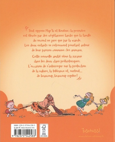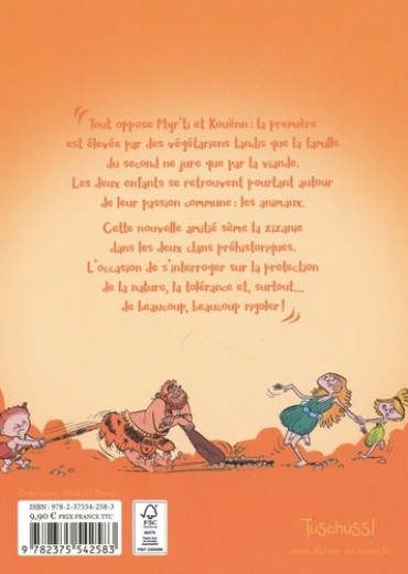A la préhistoire, quand le clan des chasseurs rencontre celui des cueilleurs c'est le choc culinaire... et humoristique ! Tout oppose Myr'ti et Kouënn : la première est élevée par des végétariens tandis que la famille du second ne jure que par la viande. Les enfants se retrouvent pourtant autour de leur passion commune : les animaux. Entre quiproquos, gags et subterfuges, cette nouvelle amitié sème la zizanie dans les deux clans préhistoriques. L'occasion de s'interroger sur les modes de consommation, la protection de la nature, la tolérance et, surtout... de beaucoup, beaucoup rigoler !