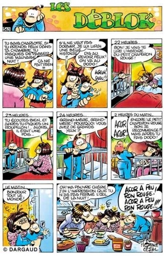 A chaque fois, c'est une fête aussi réjouissante pour les enfants que pour les adultes. Le jury du Festival d'Angoulême ne s'y est pas trompé qui, en janvier 2000, a élu Florence Cestac, Grand Prix, pour l'ensemble de son œuvre. Oeuvre où les Déblok sont comme un éclat de rire de gosse heureux.