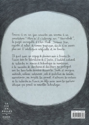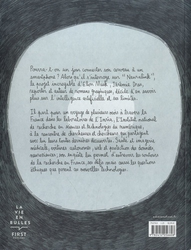 Pourra-t-on un jour connecter son cerveau à un smartphone ? Alors qu'il s'interroge sur un "Neuralink", le projet incroyable d'Elon Musk, Jérémie Dres, reporter et auteur de romans graphiques, décide d'en savoir plus sur l'intelligence artificielle et ses limites. Il part pour un voyage de plusieurs mois à travers la France dans les laboratoires de l'Inria, l'Institut national de recherche en sciences et technologies du numérique, à la rencontre de chercheuses et chercheurs qui partagent avec lui leurs toutes dernières découvertes. Santé et imagerie médicale, voitures autonomes, web et protection des données, neurosciences ; son enquête lui permet d'entrevoir les contours de la recherche en France, ses défis mais aussi les questions éthiques que posent ces nouvelles technologies.