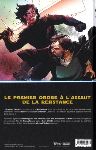 Le Premier Ordre à l'assaut de la Résistance ! Le Premier Ordre est en marche et la Résistance subit de lourdes pertes. Une lueur d'espoir surgit néanmoins lorsque Rey trouve Luke Skywalker. Cela sera-t-il suffisant pour faire basculer le cours de la guerre ? Retrouvez également Leia Organa, Poe Dameron, Kylo Ren, Chewbacca et Finn dans cette adaptation en comics du film de Rian Johnson, signée Gary Whitta (auteur de la première version du scénario de Rogue One : A Star Wars Story) et Michael Walsh (Hawkeye). Cet album contient les épisodes 1 à 6 de Star Wars ; The Last Jedi Adaptation (2018).
