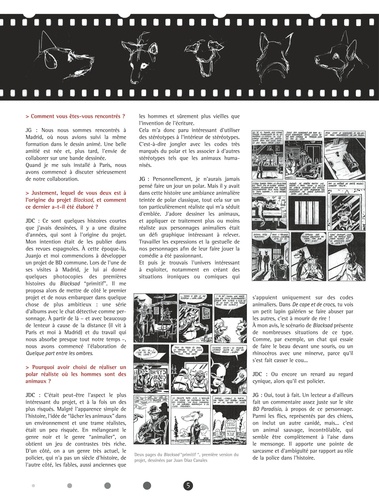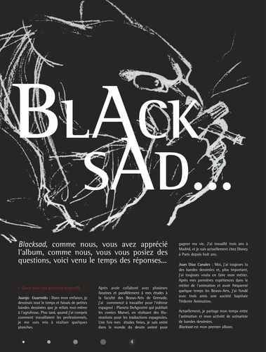 Un an après la sortie du premier titre de la magnifique série Blacksad, un making-of était publié ; on y trouvait une interview de Juan Díaz Canales et Juanjo Guarnido, le story-board commenté de l'histoire ainsi que plusieurs documents inédits. Ce hors-série, qui était épuisé, est réimprimé dans une version corrigée, dans un format identique à celui des autres albums de la série. Un superbe ouvrage, aux origines de la série !