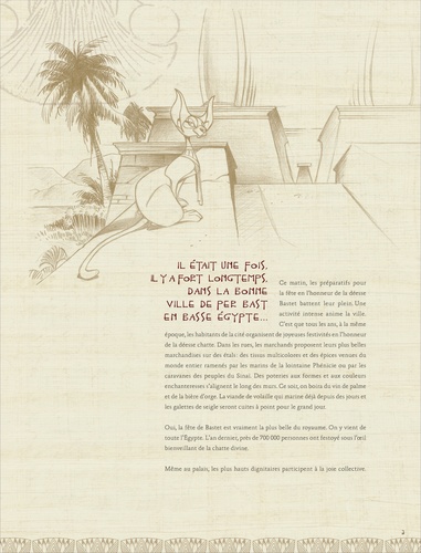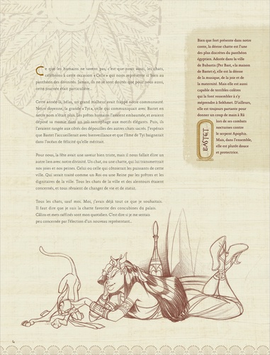 C'est la fête à Per Bast, où les célébrations de la déesse Bastet ont même attiré la royale famille du Pharaon. Mais pour les chats, c'est autre chose ! Leur grande prêtresse vient de traverser le Styx, et il leur faut élire sa remplaçante. Apoua, le babouin, a entendu parler d'une chatonne blanche qui ne peut qu'être l'élue. Pour la chatte Néfertiti, c'est une nuit de périple aux mille dangers qui commence...