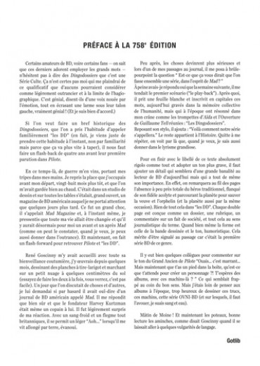 Cet opus est un monument, disons-le sans aucune vergogne. En effet, il réunit enfin en un seul volume les élucubrations poilantes de deux génies : l'immense Goscinny et le fabuleux Gotlib et vice versa. Lesquels génies avouent, par ailleurs, leur parfaite incompétence à traiter les sujets abordés : le papier qui colle au caramel mou et autres emmerdements majeurs, ou, encore plus pointu, " comment ils font pour trouer les macaronis dans le sens de la longueur " - le tout agrémenté de rédactions de l'élève Chaprot, style : L'Afrique c'est dans les kouateurs. " Incontournable ". (La Presse unanime). Bonne lecture, les poteaux et les aminches !