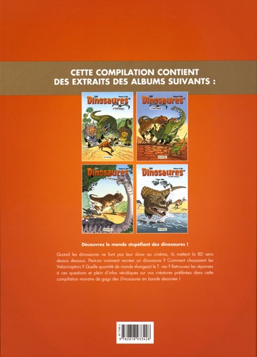 Quand les dinosaures ne font pas leur show au cinéma, ils mettent la BD sens dessus dessous. Peut-on vraiment recréer un dinosaure ? Comment chassaient les Velociraptors ? Quelle quantité de viande mangeait le T. rex ? Retrouvez les réponses à ces questions et plein d'infos véridiques sur vos créatures préférées dans cette compilation monstre de gags des Dinosaures en bande dessinée !