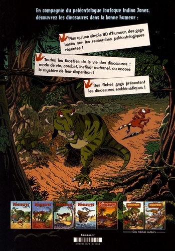 En compagnie du paléontologue loufoque Indino Jones, découvrez les dinosaures dans la bonne humeur : Plus qu'une simple BD d'humour, des gags basés sur les recherches paléontologiques récentes ! Toutes les facettes de la vie des dinosaures : mode de vie, combat, instinct maternel, ou encore le mystère de leur disparition ! Des fiches gags présentant les dinosaures emblématiques !