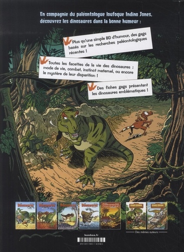 En compagnie du paléontologue loufoque Indino Jones, découvrez les dinosaures dans la bonne humeur : Plus qu'une simple BD d'humour, des gags basés sur les recherches paléontologiques récentes ! Toutes les facettes de la vie des dinosaures : mode de vie, combat, instinct maternel, ou encore le mystère de leur disparition ! Des fiches gags présentant les dinosaures emblématiques !