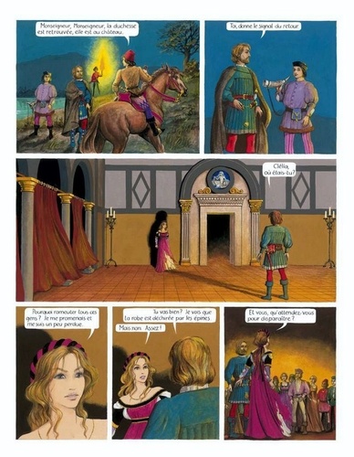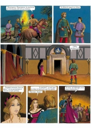 Au temps de la Renaissance, dans un duché du Nord de l'Italie. Lors d'une partie de chasse, un cerf est forcé et la jeune duchesse Clélia Marzari s'est précipitée pour donner le coup de grâce. Son époux, le duc Ricciardo Malaguti, nettement plus âgé qu'elle, est troublé par cette violence soudaine. Au cours de la fête donnée le soir même au palais, Clélia rencontre le nouveau poète de cour, Massimo Ferri. Il dédie son madrigal à Clélia qui se laisse envoûter par sa musique. Puis, le duc montre à sa jeune épouse le pavillon avancé sur le lac construit pour elle. Pavillon d'un raffinement extrême réalisé par le vieux Maître Francesco, un expert en tous les arts et machineries du temps (jeux d'eau, pompes, fontaines, etc). Clélia est fascinée, l'eau du lac noir sous la lune monte dans la fontaine intérieure. Ce sont des eaux de lune, dit-elle. Le duc prend Clélia dans ses bras, mais la belle ne se laisse aller qu'avec une évidente mauvaise grâce. n parallèle, lors de la fête, une idylle E était née entre Rafaella Pazzi, dame de la cour, et le jeune peintre Luigi à qui elle a fait une farce, se faisant passer pour morte afin d'avoir un portrait funéraire. Un amour heureux commence ainsi qui courra tout le long de l'histoire...