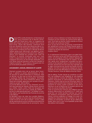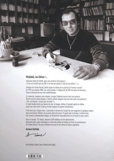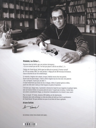 "Malgré le temps, le style incisif de ces éditos n'a rien perdu de son charme, de son humour décapant ou même de son éclat" écrit humblement Gotlib. Et on est bien d'accord... Découvrez la crème des éditos de Gotlib, la quintessence de l'esprit Fluide Glacial rassemblée en une anthologie, commentée et enrichie par Gérard Viry-Babel. Créateur de Fluide Glacial, Gotlib signe les éditos de ce magazine à l'humour corrosif, impertinent mais toujours à point, de 1975 aux années 2000. De par leur forme, leur structure, leur sujet, leur ton et leur habillage, ces éditos marquent différentes périodes de l'histoire du magazine. Toujours avec umour et une plume pleine de verve, Gotlib parvient à retranscrire l'esprit du magazine en quelques lignes, introduisant ainsi 88 pages de lecture BD tout en permettant au lecteur de découvrir autrement le métier de rédacteur en chef. Il joue avec le lecteur, l'inclut, le fait entrer dans l'univers enfantin mais à l'umour adulte propre à Fluide Glacial, se réinventant chaque mois et se livrant à coeur ouvert. Anecdotes, blagues, dessins : les éditos sont pluriels, d'une rare richesse créative et d'une générosité débordante. Cet ouvrage vous invite au sein de la rédaction d'un journal qui s'apprête à souffler ses 50 bougies et dont le ton et l'approche humoristique continuent de nous muscler les zygomatiques et d'inspirer d'autres rois de l'humour comme Alain Chabat, Antoine de Caunes, Zep, Fabcaro et bien d'autres encore !