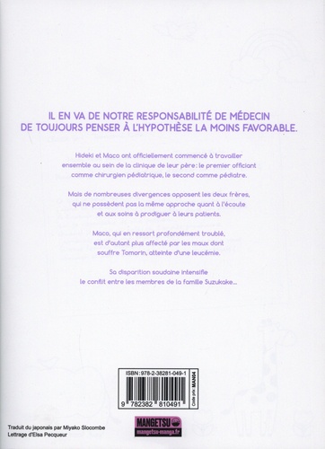 Maco et son frère Hideki, chirurgien pédiatrique, ont commencé à travailler dans le service de pédiatrie de leur père. Mais les deux frères sont en opposition totale dans leur approche des patients et leur philosophie, ce qui trouble profondément Maco. De plus, Hideki semble agir dans l'ombre afin de concrétiser ses ambitions personnelles. Un jour, Tomorin, hospitalisée pour une leucémie et patiente de Maco, se volatilise soudainement. Les conflits entre les Suzukake s'intensifient autour d'elle, portés par de vieilles blessures du passé... Après Le Bateau de Thésée, Toshiya Higashimoto revient avec une nouvelle oeuvre pleine d'humanité portée par un héros sincère au grand coeur.