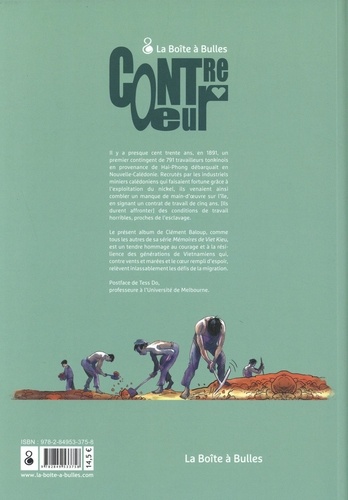 Il y a presque cent trente ans, en 1891, un premier contingent de 791 travailleurs tonkinois en provenance de Hai-Phong débarquait en Nouvelle-Calédonie. Recrutés par tes industriels miniers calédoniens qui faisaient fortune grâce a l'exploitation du nickel, ils venaient ainsi combler un manque de main-d'oeuvre sur l'île, en signant un contrat de travail de cinq ans. (Ils durent affronter) des conditions de travail horribles, proches de l'esclavage.