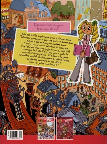 Léa est la fille la plus perspicace de son école. Tellement perspicace que ses amis se demandent même si elle n'a pas un sixième sens. C'est vrai qu'aucun détail ne lui échappe et qu'elle ne croit pas toujours ce qu'on lui dit. Comment fait-elle ? En fait, Léa a juste le sens de l'observation. D'ailleurs, tu peux relever le défi de découvrir en même temps qu'elle les énigmes de cet album. A toi de jouer maintenant !