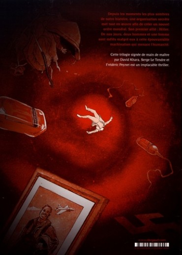 Depuis les moments les plus sombres de notre histoire, une organisation secrète met tout en oeuvre afin de créer un nouvel ordre mondial. Son premier allié : Hitler. De nos jours, deux hommes et une femme sont mêlés malgré eux à cette épouvantable machination qui menace l'humanité… Cette trilogie signée de main de maître par David Khara, Serge Le Tendre et Frédéric Peynet est un implacable thriller.