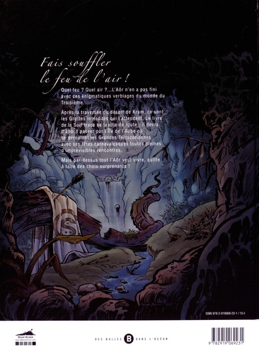 Fais souffler le feu de l'air ! Quel feu ? Quel air ?... L'Aôr n'en a pas fini avec ces énigmatiques verbiages du monde du Troisième. Après la traversée du désert de Kram, ce sont les Grottes interdites qui l'attendent. Le livre de la Soif trace sa feuille de route : il devra d'abord passer par l'île de l'Aube où se déroulent les Grandes Terracotiennes avec ses fêtes carnavalesques toutes pleines d'imprévisibles rencontres. Mais par-dessus tout l'Aôr veut vivre, quitte à faire des choix surprenants !