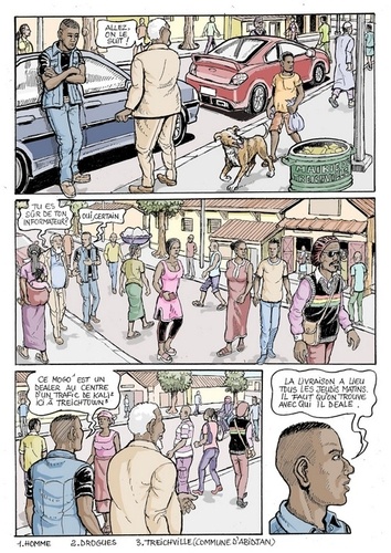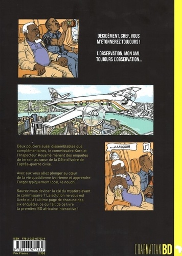 Le commissaire Koro et l'inspecteur Kouamé, deux policiers aussi dissemblables que complémentaires, mènent l'enquête dans la Côte d'Ivoire de l'après-guerre civile. Avec eux, le lecteur plonge au coeur de la vie quotidienne ivoirienne tout en apprenant l'argot typiquement local : le nouchi. La solution de chacune de leurs six enquêtes n'est livrée qu'à l'ultime page de chaque épisode, ce qui fait de ce livre la première BD africaine à énigme.