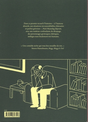 Dans ce premier recueil d'histoires — à l'humour absurde, aux situations invraisemblables, hilarantes et parfois grivoises —, Nick Maandag dépeint, avec une maîtrise confondante du dérapage, des personnages grotesques, lubriques, ambigus mais finalement très humains.
