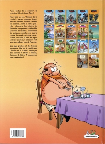 Pour faire un bon "Fondus de la cuisine", prenez quelques épicuriens en situation, ouverts à toutes les cuisines... dans la même journée ; ajoutez-y des cuistots du dimanche, qui peinent à réchauffer une boite de raviolis : assaisonnez de quelques conseils pour que la cuisine du monde ne tourne pas en cuisine immonde. Et pour des repas vraiment conviviaux, arrosez le tout avec les meilleurs crus de l'humour.