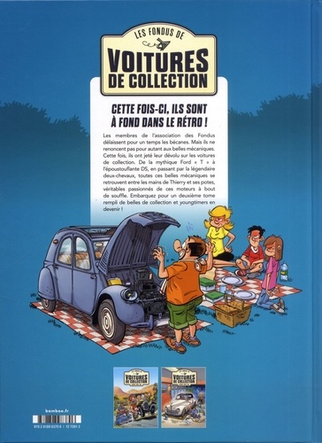 Cette fois-ci, ils sont à fond dans le rétro ! Les membres de l'association des Fondus délaissent pour un temps les bécanes. Mais ils ne renoncent pas pour autant aux belles mécaniques. Cette fois, ils ont jeté leur dévolu sur les voitures de collections. De la mythique Ford " T " à l'époustouflante DS, en passant par la légendaire Deux-chevaux, toutes ces belles mécaniques se retrouvent entre les mains de Thierry et ses potes, véritables passionnés de ces moteurs à bout de souffle. Embarquez pour un deuxième tome rempli de belles de collection et youngtimers en devenir !