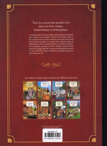 A consommer sans modération ! Les passionnés, rien ne les arrête. Surtout pas les kilomètres pour assouvir leur passion. Comme les Fondus vivent la leur jusqu'à la lie, ils vous convient à un tour de France des plus grands vignobles. Un voyage fait de rencontres avec les meilleurs artisans du vin (artistes, pourrait-on dire ! ), de découvertes et de dégustation. Plongez-vous dans des dizaines de gags hilarants et des dossiers complets sur les différentes régions viticoles et devenez à votre tour un vrai fondu du vin.