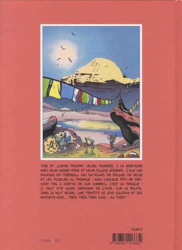 Tine et Junior passent leurs vacances à la montagne avec leur grand-père et leur cousin Léonard. A eux les balades en traîneau, les batailles de boules de neige et les fondues au fromage ! Mais lorsque papy ne parvient pas à sortir de son sommeil, c'est la panique ! Il faut vite aller chercher de l'aide. Sur la route, dans la nuit noire, une tempête se lève soudain et les emporte loin... Très très très loin... Au Tibet !
