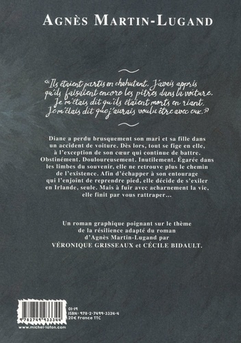 Diane a perdu brusquement son mari et sa fille dans un accident de voiture. Dès lors, tout se fige en elle, à l'exception de son coeur qui continue de battre. Obstinément. Douloureusement. Inutilement. Egarée dans les limbes du souvenir, elle ne retrouve plus le chemin de l'existence. Afin d'échapper à son entourage qui l'enjoint de reprendre pied, elle décide de s'exiler en Irlande, seule. Mais à fuir avec acharnement la vie, elle finit par vous rattraper... Un roman graphique poignant sur le thème de la résilience adapté du roman d'Agnès Martin-Lugand par VERONIQUE GRISSEAUX et CECILE BIDAULT.