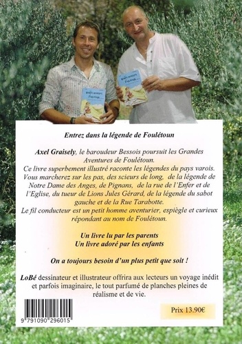 Axel Graisely, le baroudeur Bessois poursuit les grandes aventures de Foulétoun. Ce livre superbement illustré raconte les légende du pays varois. Vous marcherez sur les pas, des scieurs de long, de la légende de Notre-Dame des anges, de Pignans, de la rue de l'enfer et de l'église, du tueur de Lions Jules Gérard, de la légende du sabot gauche et de la rue Tarabuste. Le fil conducteur est un un petit 1 aventurier, espiègle et curieux répondant au nom de Foulétoun. Un livre lu par les parents Un livre adoré par les enfants On a toujours besoin d'un plus petit que soit ! Lobé dessinateur et illustrateur offrira aux lecteurs un voyage inédit et parfois imaginaire, le tout parfumé de planches pleines de réalisme et de vie.