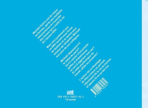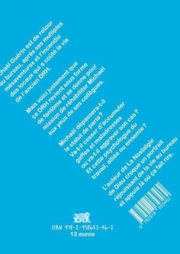 Michaël Guérin est de retour au bureau, après ses multiples mésaventures et l'incendie des locaux qui a coûté la vie de l'ancien DRH. Mais voici justement que ce DRH revient sous forme de fantôme et se donne pour mission de réhabiliter Michaël aux yeux de ses collègues. Michaël dépassera-t-il le statut de paria ? Va-t-il cesser d'accumuler gaffes et maladresses ou va-t-il aggraver son cas ? Et cette psychologue du travail, alliée ou ennemie ? L'auteur de La nostalgie de Dieu croque un portrait réjouissant de la vie au bureau et appuie là où ça fait rire.