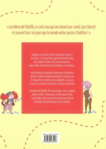 "Les héros de l'étoffe, ce sont ceux qui ont donné leur santé, leur liberté et souvent leur vie pour que le monde entier puisse s'habiller ! " Imaginez un salon du textile se jouant de l'espace et du temps : s'y croisent Karl Lagerfeld, Michael Jordan, Jean-Baptiste Colbert, Ötzi, une influenceuse, Adam Smith, une ouvrière textile indienne, le roi Arthur... Loin de découler de quelques innovations d'inventeurs géniaux, l'industrialisation du monde fut un processus de longue durée, modelé par les inégalités, l'accès aux ressources naturelles et des luttes sociales et politiques. tes héros de t'étoffe offre une plongée, sous la conduite d'Audrey Millet, l'historienne, et Pétronille Griffon, l'archéologue, dans une histoire qui est aussi celle de l'humanité, du Paléolithique à la fast fashion...