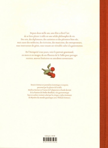 Depuis deux mille ans, ils sont quelques-uns à avoir élevé l'art du plaisir à table au rang de philosophie existentielle. Ils étaient rois, diplomates, cuisiniers, bien sûr, mais aussi médecins, écrivains, acteurs, tous innovateurs de génie, tous avec un petit grain de folie qui en fait des "illustres de la table". Voici une trentaine de portraits en mots et en images pour partager des recettes, des extraits d'oeuvres littéraires ou quelques anecdotes truculentes.