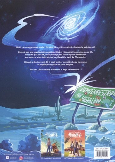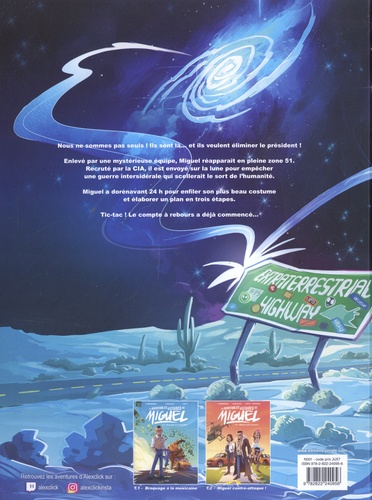 Nous ne sommes pas seuls ! Ils sont là... et ils veulent éliminer le président ! Enlevé par une mystérieuse équipe, Miguel réapparaît en pleine zone 51. Recruté par la CIA, il est envoyé sur la lune pour empêcher une guerre intersidérale qui scellerait le sort de l'humanité. Miguel a dorénavant 24 h pour enfiler son plus beau costume et élaborer un plan en trois étapes. Tic-tac ! Le compte à rebours a déjà commencé...