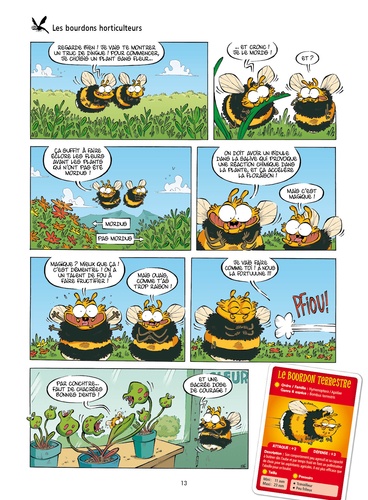 La BD "pro-bourdon" qui ne manque pas de z'ailes ! Savez-vous que des coléoptères se dirigent grâce aux étoiles et qu'il existe des mouches transparentes ? Savez-vous que des fourmis se constituent de véritables armures minérales ? Et connaissez-vous toutes ces petites bêtes qui servent à élucider les crimes encore mieux que les gendarmes ? Embarquez pour un voyage fascinant au pays des insectes avec ce nouveau tome où on apprend des tas de choses sur les petites bêtes à six pattes tout en s'amusant ! La seule BD sur les insectes qui chasse le cafard ! Inclus : un cahier documentaire.