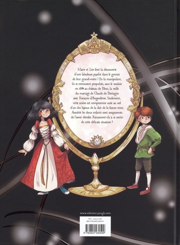 Voyagez dans les couloirs du temps ! Le carnaval approche ! Marie et son petit frère Léo rendent visite à leur grand-mère, ancienne costumière de théâtre et couturière aux doigts de fée. Dans le grenier, au fond d'une vieille malle, ils trouvent leur bonheur : pour Léo un costume digne de la Renaissance et pour Marie une superbe robe de princesse. Il ne manque qu'un miroir pour s'admirer. Léo en trouve un sous un vieux drap. Sans le vouloir, il actionne un mécanisme qui leur ouvre un mystérieux passage... dans l'espace et le temps ! Les enfants sont aspirés et transportés le 17 mai 1514, dans la chambre de Claude de Bretagne, la veille de son mariage avec François d'Angoulême. Et ils tombent à pic : le Côte-de-Bretagne, futur joyau de la couronne, vient d'être dérobé ! Parviendront-ils à mettre la main sur la pierre à temps et trouver le chemin du retour