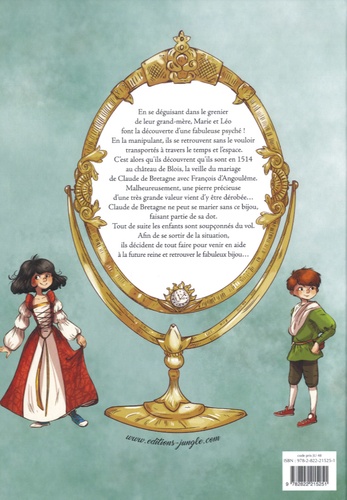 Le carnaval approche ! Marie et son petit frère Léo rendent visite à leur grand-mère, ancienne costumière de théâtre et couturière aux doigts de fée. Dans le grenier, au fond d'une vieille malle, ils trouvent leur bonheur : pour Léo un costume digne de la Renaissance et Marie une superbe robe de princesse. Il ne manque qu'un miroir pour s'admirer. Léo en trouve un sous un vieux drap. C'est un magnifique psyché, que le petit garçon examine avec attention... Sans le vouloir, il actionne un mécanisme qui leur ouvre un mystérieux passage dans l'espace et le temps ! Les enfants sont aspirés et transportés le 17 mai 1514, dans la chambre de Claude de Bretagne, la veille de son mariage avec François d'Angoulême. Et ils tombent à pic : le Côte-de-Bretagne, futur joyaux de la couronne, vient d'être dérobé ! Parviendront-ils à mettre la mains sur la pierre à temps et trouver le chemin du retour ?