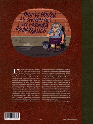 L'histoire du Monde se compose d'une multitude de petites et grandes histoires, devenues au fil du temps de véritables légendes constituant l'imaginaire collectif de l'humanité. Des personnages réels ou inventés font notre culture commune. Napoléon Bonaparte, Tarzan, les trois mousquetaires, Jésus Christ, Marilyn Monroe, le Commissaire Maigret, Jules Spy ou le Général de Gaulle se rejoignent et rivalisent de popularité dans le grand Cerveau Mondial. Le professeur Caritte, dans son immense bonté, a accepté contre quelques monnaies sonnantes, d'illuminer la Planète de ceux qui savent lire en restituant quelques vérités bien senties. Après d'immenses, laborieuses et fastidieuses recherches archéologiques, d'interminables mais passionnantes études de lourds volumes poussiéreux dans les bibliothèques sombres et défraichies et quelques voyages aventureux au travers des quatre coins du Monde civilisé suivis d'une bonne nuit de repos, il restitue enfin la substantifique moelle de ses réflexions, quitte à en choquer quelques-uns enfermés qu'ils sont dans leurs suffisances serties de leurs certitudes. Fort heureusement, le Professeur, riche d'une très grande expérience, saura prouver la véracité de ses démonstrations. Reprenant la chronologie de toutes les histoires et s'attardant de-ci de-là afin de préciser quelques anecdotes et détails, il compte réviser l'Histoire en quelques brefs et succincts mais clairs, nets et précis récits pour qu'enfin le pauvre Monde désemparé comprenne comment il a bien pu en arriver là. Inutile de vous le dire, ça ne rigole pas.
