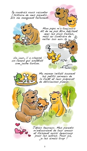 Après avoir perdu ses parents, Pilou l'ourson est allé s'installer dans un village au coeur de la forêt. Il recueille un chiot muet, Mimi, que les habitants du village tiennent à l'écart, et l'aide à grandir en l'entourant d'amour. Grâce à son dévouement et à sa patience, Mimi s'ouvre peu à peu au monde et se rend compte à quel point il est unique et précieux...