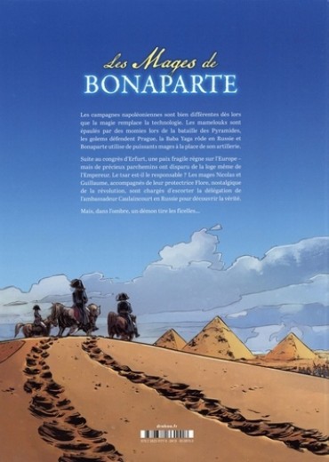 Les campagnes napoléoniennes sont bien différentes dès lors que la magie remplace la technologie. Les mamelouks sont épaulés par des momies lors de la bataille des Pyramides, les golems défendent Prague, la Baba Yaga rôde en Russie et Bonaparte utilise de puissants mages à la place de son artillerie. Suite au congrès d'Erfurt, une paix fragile règne sur mais de précieux parchemins ont disparu de la loge même de l'Empereur. Le tsar est-il le responsable ? Les mages Nicolas et Guillaume, accompagnés de leur protectrice Flore, nostalgique de la révolution, sont chargés d'escorter la délégation de l'ambassadeur Caulaincourt en Russie pour découvrir la vérité. Mais , dans l'ombre, un démon tire les ficelles...
